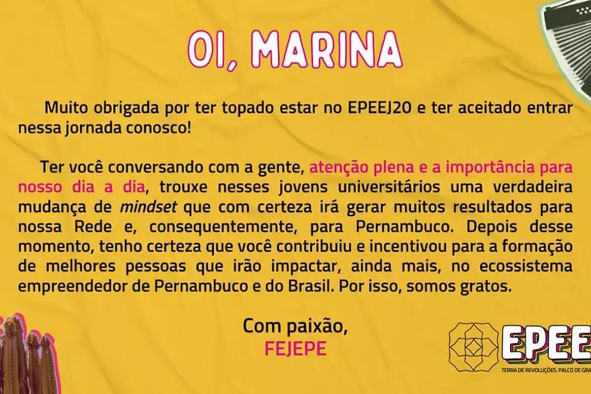 Palestra sobre Mindfulness para o EPEEJ 20, evento produzido pela FEJEPE (Federação das Empresas Juniores do Estado de Pernambuco), com como propósito convidar quase 1000 Empresários Juniores para o aprendizado e o compartilhamento de conteúdo, por meio de um dia de conexão e capacitação em diversas áreas, em uma jornada que transpassa pelo ciclo da…